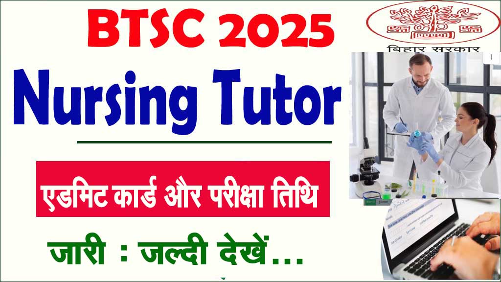BTSC Tutor Nursing Admit Card 2025 : BTSC Tutor Nursing ऐसे अभ्यर्थी जो लोग इस पद के लिए ऑनलाइन के माध्यम से आवेदन किये थे और एग्जाम डेट, एडमिट कार्ड को लेकर इंतजार कर रहे थे तो इन सभी तिथि के बारे में जानकारी के लिए आप इस आर्टिकल को जरूर पढ़े ताकि एग्जाम डेट और एडमिट कार्ड डाउनलोड करने से जुड़ी जानकारी हो सके और आप निर्धारित समय से एडमिट कार्ड डाउनलोड कर के परीक्षा में भाग ले सके। BTSC Tutor Nursing Admit Card 2025 Download