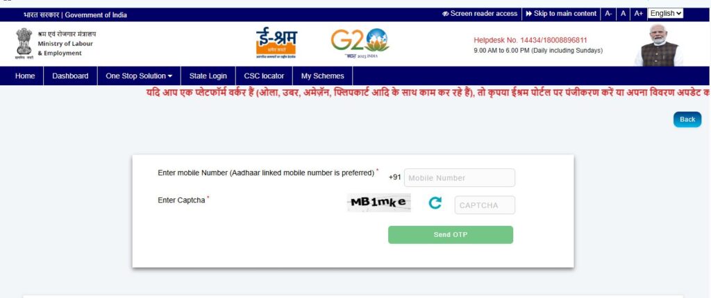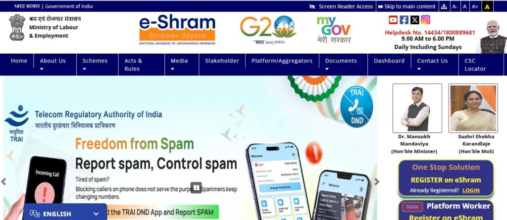 - E Shram Card में अपडेट करने के लिए आप सबसे पहले इसकी अधिकारी ऑफिसियल वेबसाइट पर जाना होगा जिस लिंक इस आर्टिकल के निचे में Important सेक्शन ऑप्शन में देखने को मिल जायेगा।