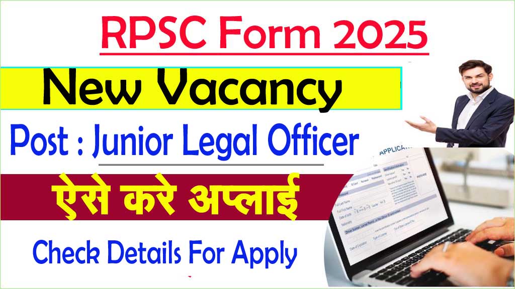 Junior Legal Officer Apply Online : RPSC Junior Legal Officer Vacancy 2025 इस पद के लिए आवेदन कौन – कौन लोग फॉर्म भर सकते है, इसमें शैक्षणिक योग्यता, उम्र सीमा, आवेदन शुल्क, ऑनलाइन आवेदन कब से कब तक लिया जायेगा । अगर आप भी इस पद के आवेदन करना चाहते है तो इन सभी से जुड़ी जानकारी के लिए आप इस आर्टिकल को पूरी तरह से पढ़ सकते है ताकि आपको आवेदन करने में किसी प्रकार की परेशानी त्रुटि न हो और आप आसानी से आवेदन कर सके। Rajasthan Public Service Commission (RPSC) New Vacancy 2025