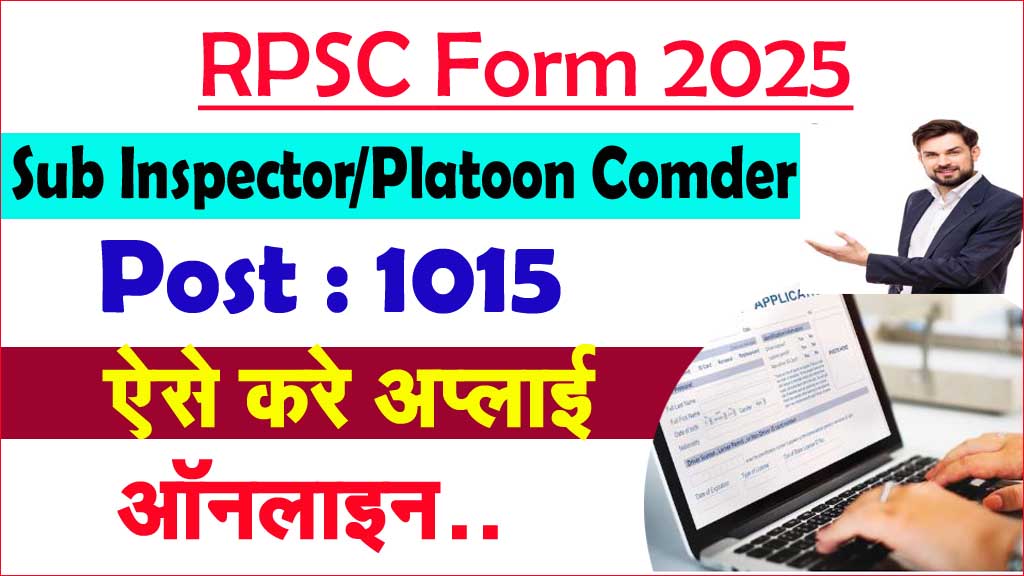 RPSC SI / Platoon Commander Bharti 2025 Online Form : Rajasthan Public Service Commission (RPSC). Are looking for Sub Inspector/ Platoon Commander posts सुयोगय उम्मीदवार इस Sub Inspector/ Platoon Commander पद के आवेदन कर सकते है तो इसका ऑफिसियल नोटिफिएशन जारी कर जानकारी दिया गया है। अगर आप इस पद के लिए आवेदन करना चाहते है तो ऑनलाइन के के माध्यम से फॉर्म को भरना होगा। इसमें योग्यता , उम्र सीमा, पदों की विवरण, सभी का जानकारी के लिए इस आर्टिकल को पढ़ सकते है। RPSC SI / Platoon Commander Bharti 2025 Online Form